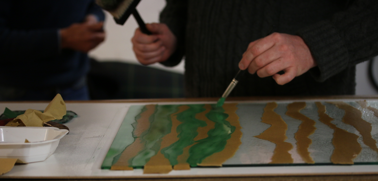 Créations d’un moucharabieh contemporain en verre peint à la grisaille Previous Next Publié janvier 23, 2018 à 1575 × 757 dans Moucharabieh contemporain en verre Création d’un moucharabieh contemporain en verre pour une habitation Peinture sur verre à la grisaille verte, étape d’application de la grisaille liquide au pinceau mouilleur.