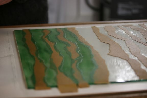 créations Moucharabieh contemporain en verre Previous Next Publié janvier 23, 2018 à 576 × 384 dans Moucharabieh contemporain en verre Résultat après blaireautage Verre transparent peint partiellement à la grisaille verte, travaille en cours.